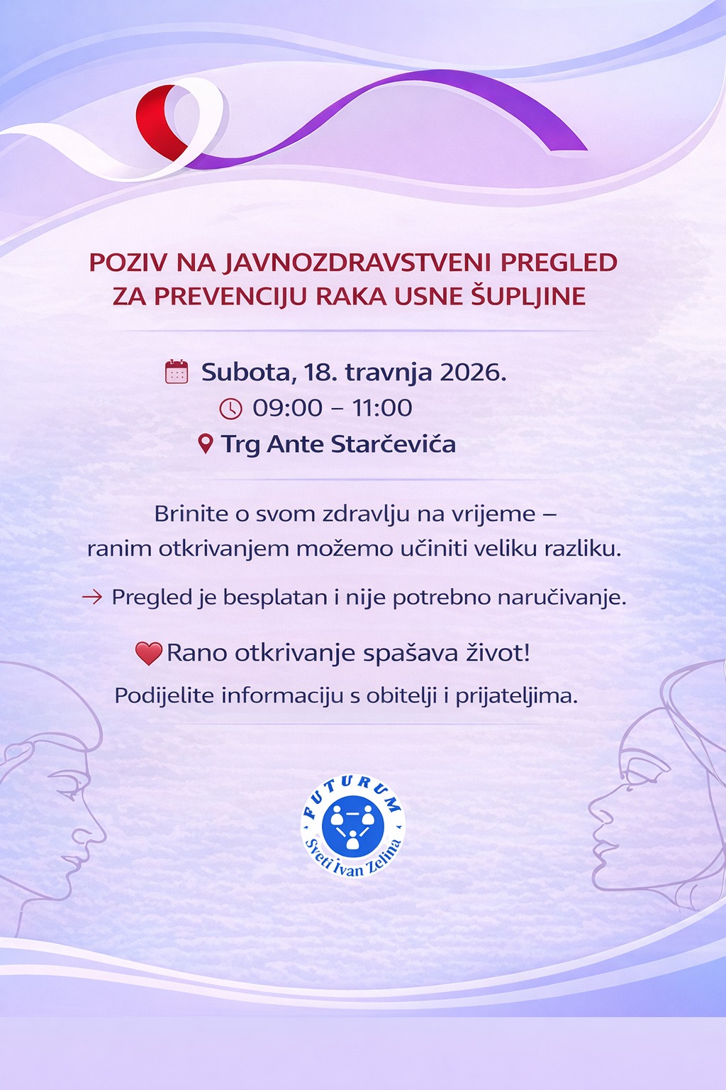 Javnozdravstvena akcija održat će se u subotu, 18. travnja 2026. godine, od 9:00 do 11:00 sati na Trgu Ante Starčevića u Svetom Ivanu Zelini.